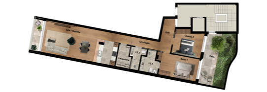 Comunicam directamente com a varanda com vista para o Parque verde da Cidade de Leiria. A cozinha terá mobiliário com acabamento em madeira, com apontamentos de painéis texturados e puxadores de perfil; Bancadas e frente de salpicos em composto de pedra com grafismos suaves em tonalidades bege ou cinza. Lava-loiças de encastre por baixo, torneira monocomando com chuveiro extraível na cor titânio. Pavimento em cerâmico bege, electrodomésticos embutidos.
